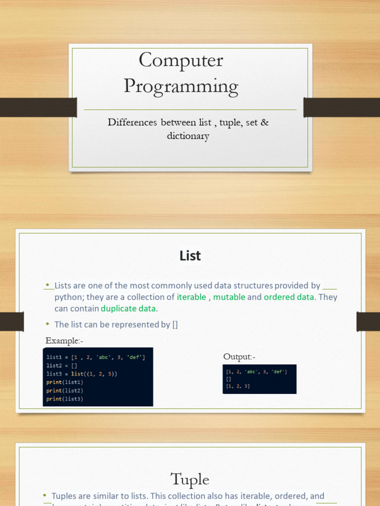 Based on this image's title: “Python Tuple Sets Dictionary | PDF | Mathematical Logic | Computer Science”