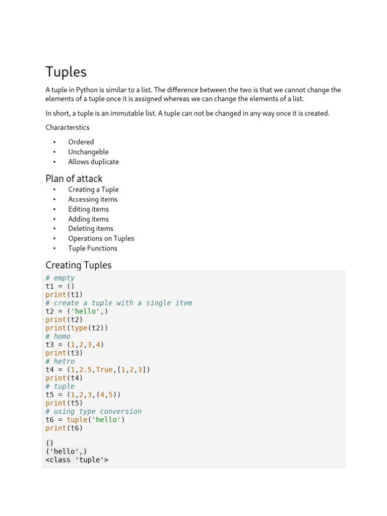 Python Tuples Cheat Sheet | PDF