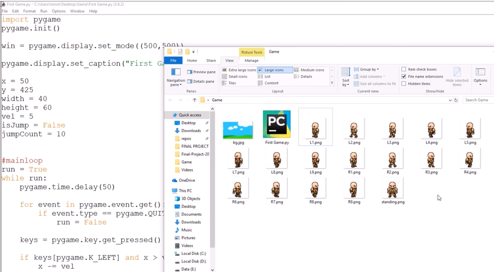 Based on this image's title: “Animation on Pygame 2 – free characters and more actions – python ...