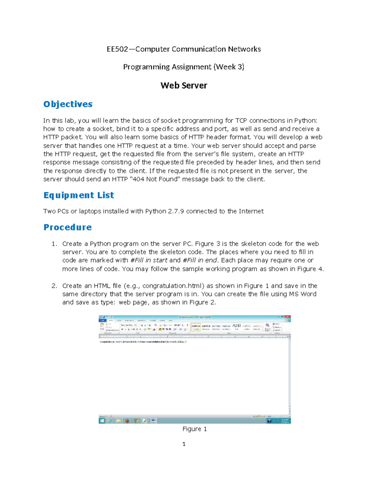 EE502 W3 Programming Assignment - TCP Socket Web Server Lab - Studocu