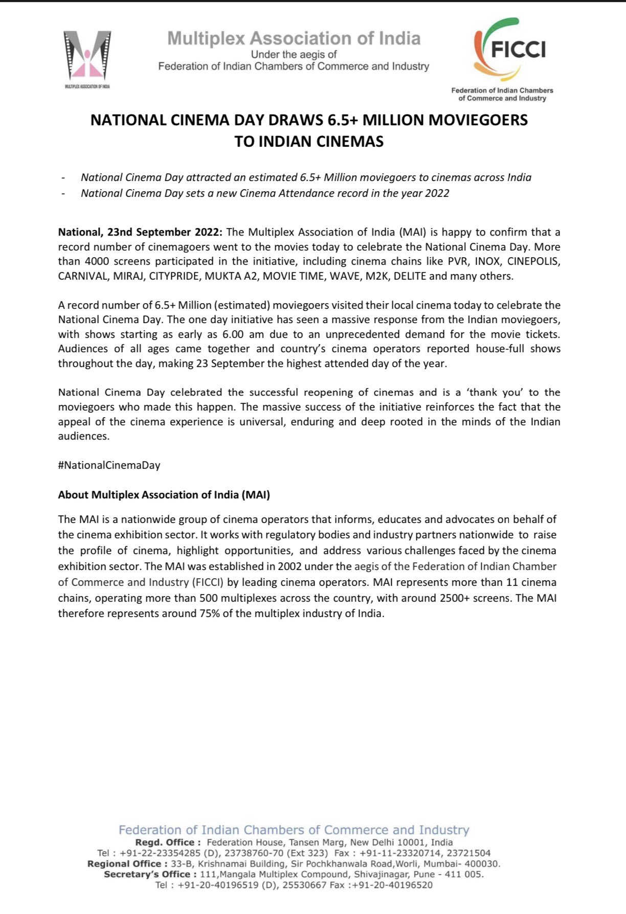 Multiplex Association Of India on Twitter: "National Cinema Day ...