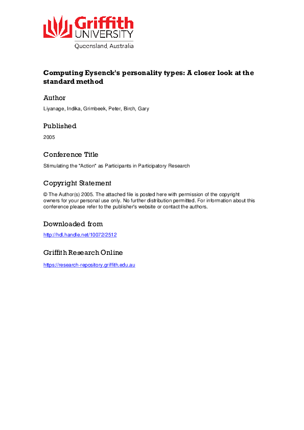 (PDF) Eysenck Personality Questionnaire – Revised (EPQ-R): Practical ...