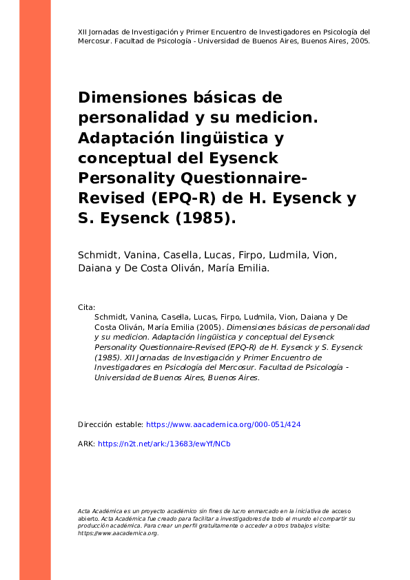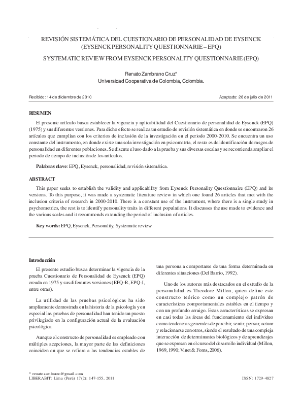 (PDF) REVISIÓN SISTEMÁTICA DEL CUESTIONARIO DE PERSONALIDAD DE EYSENCK ...