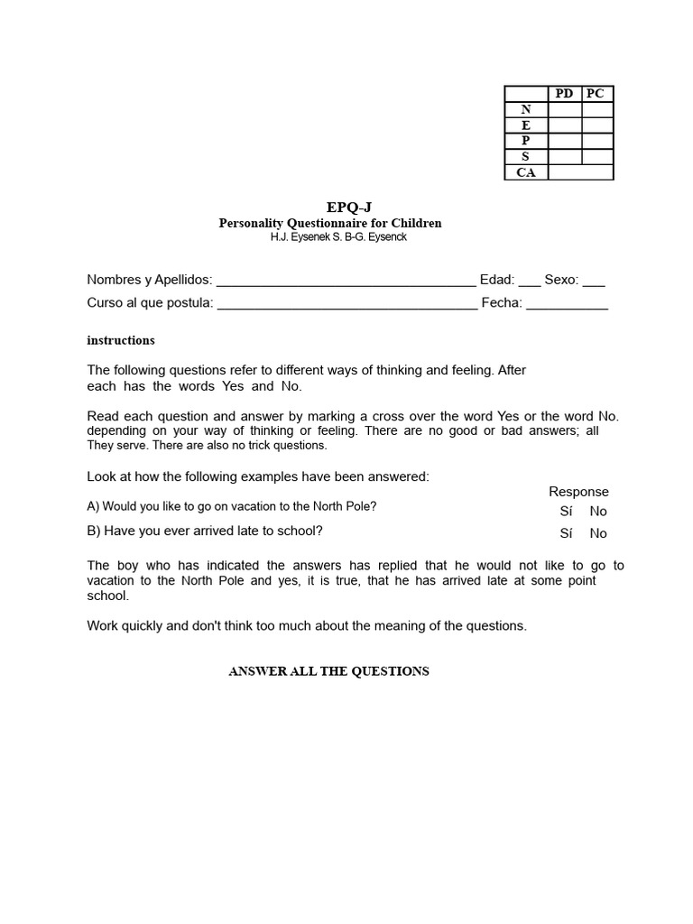 EPQ significa Cuestionario de personalidad de Eysenck - Eysenck ...