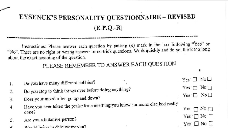 Eysenck's Personality Questionnaire (EPQ) - Revised Version - Studocu