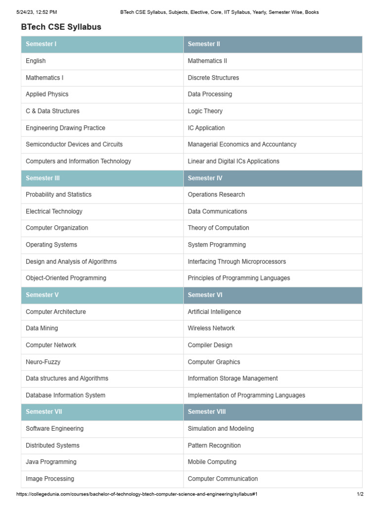 BTech CSE Syllabus Overview | PDF | Computer Programming | Information