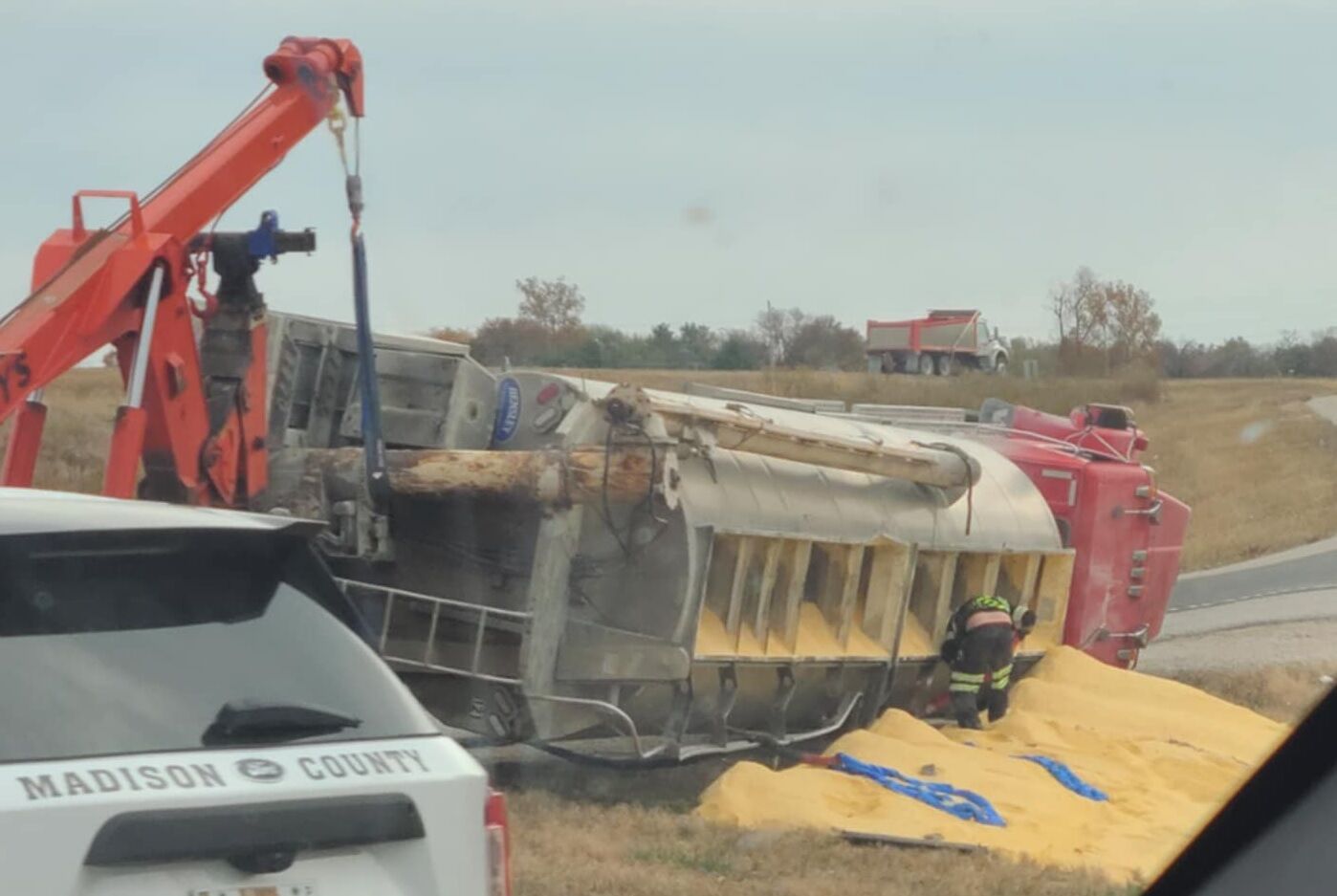 Truck overturns on ramp, spills grain | Local News | advantagenews.com