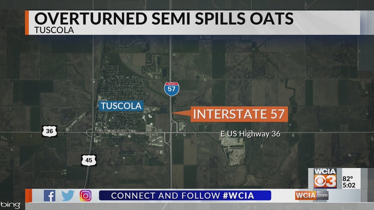 Part of I-57 N closes after semi-truck overturns, spills oats on the ...