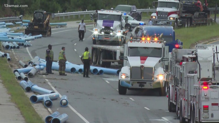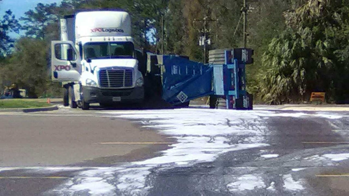 BSO: Overturned semi truck spills blue pipes over Sardis Church Road ...