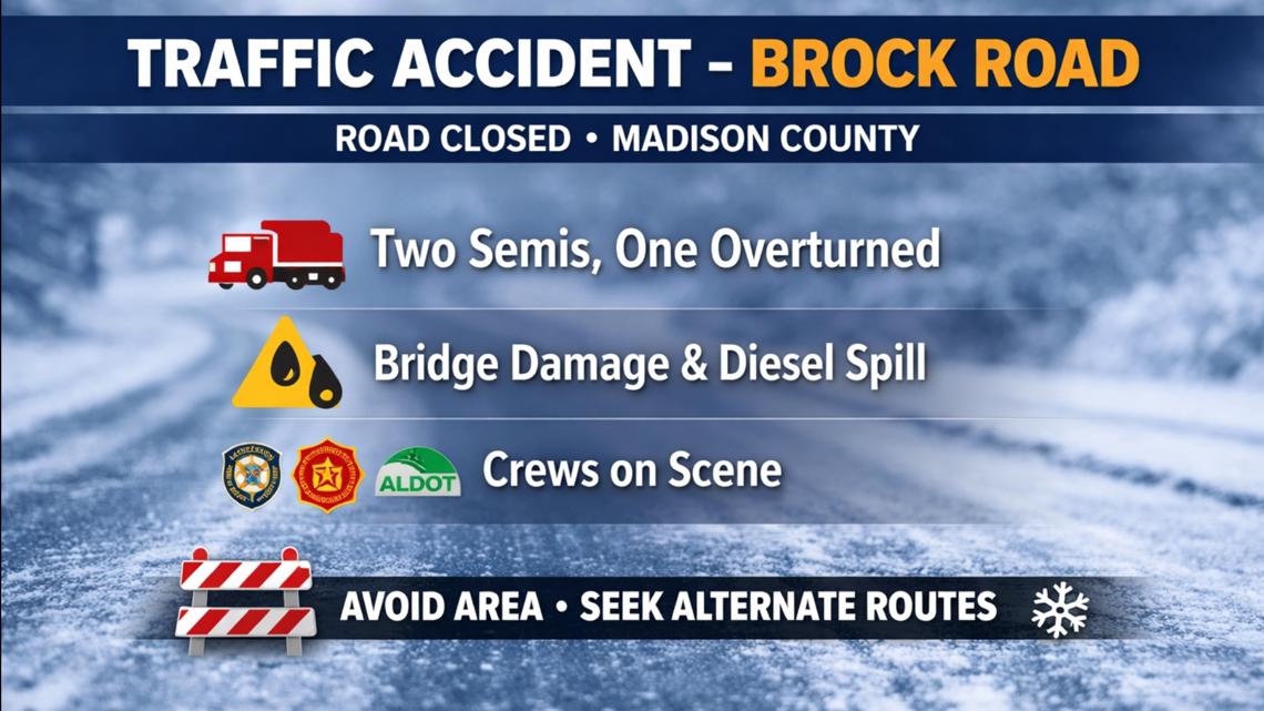 Crash closes Brock Road in Madison County; semi-truck overturns, fuel ...