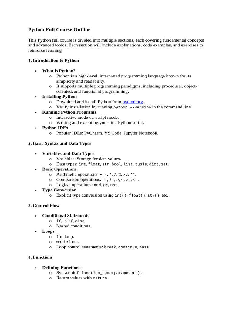 Course Outline Python | PDF | Python (Programming Language) | Control Flow