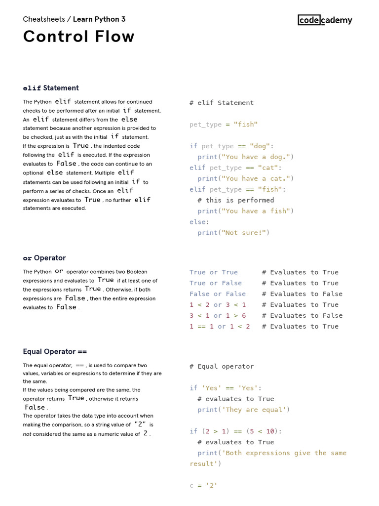 Learn Python 3_ Control Flow Cheatsheet _ Codecademy | PDF | Boolean ...