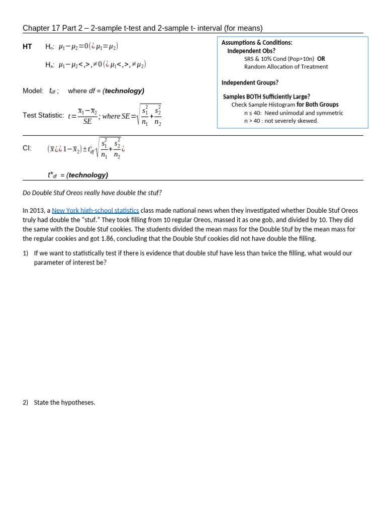 Chap 17 P2 Handout - Oreos | PDF | Student's T Test | Statistics