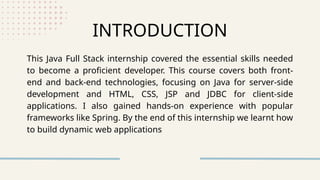 Full Stack Java Internship Report: Skills and Experiences Gained ...