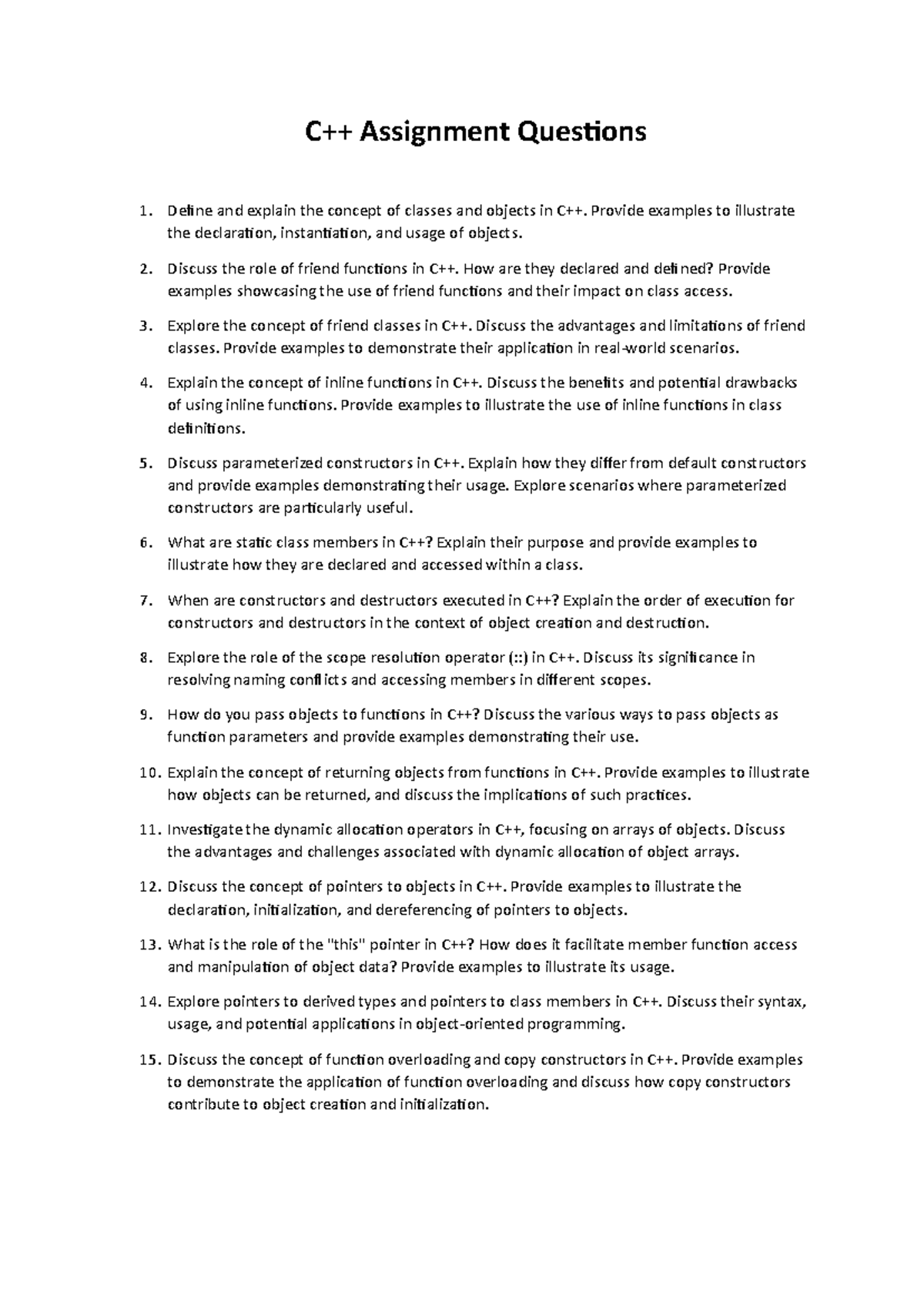 C++ Assignment Question - C++ Assignment Questions Define and explain ...