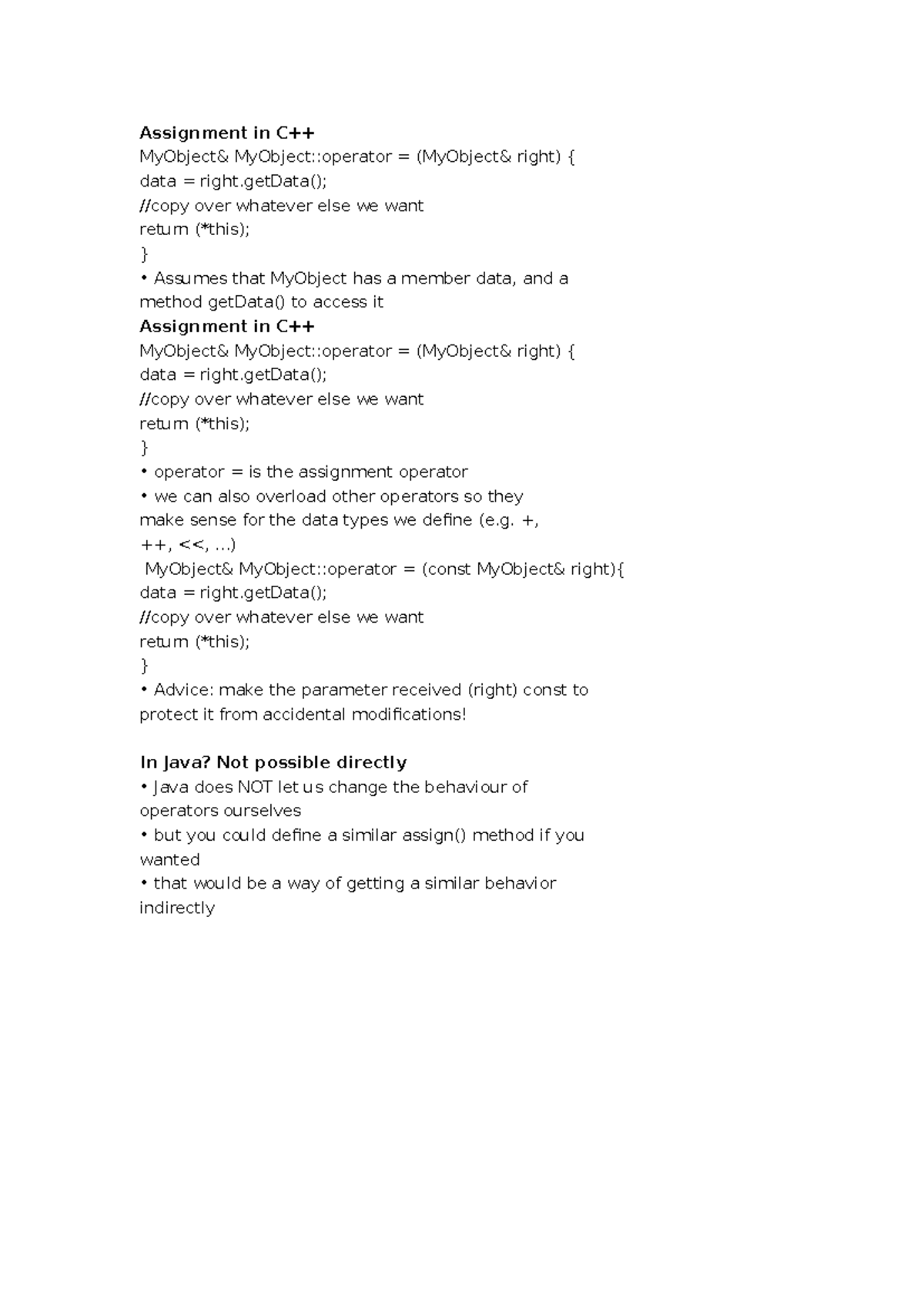 Assignment in C++ - notes - Assignment in C++ MyObject& MyObject ...