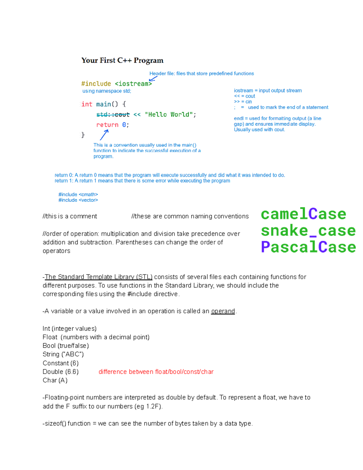 C++ Programming Exam 1 Study Guide (Condensed) - Studocu
