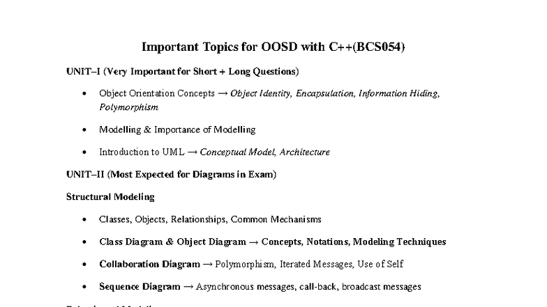 Important Topics for OOSD (C++ BCS054): Key Concepts & Exam Insights ...