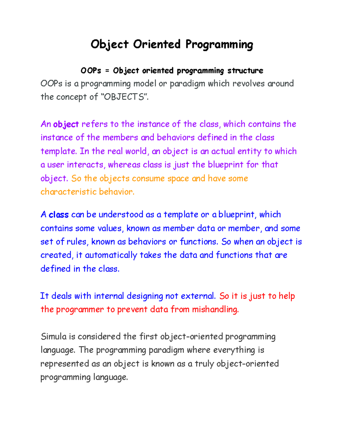 OOPS Notes - Just for reference - OOPS Object Oriented Programming ...