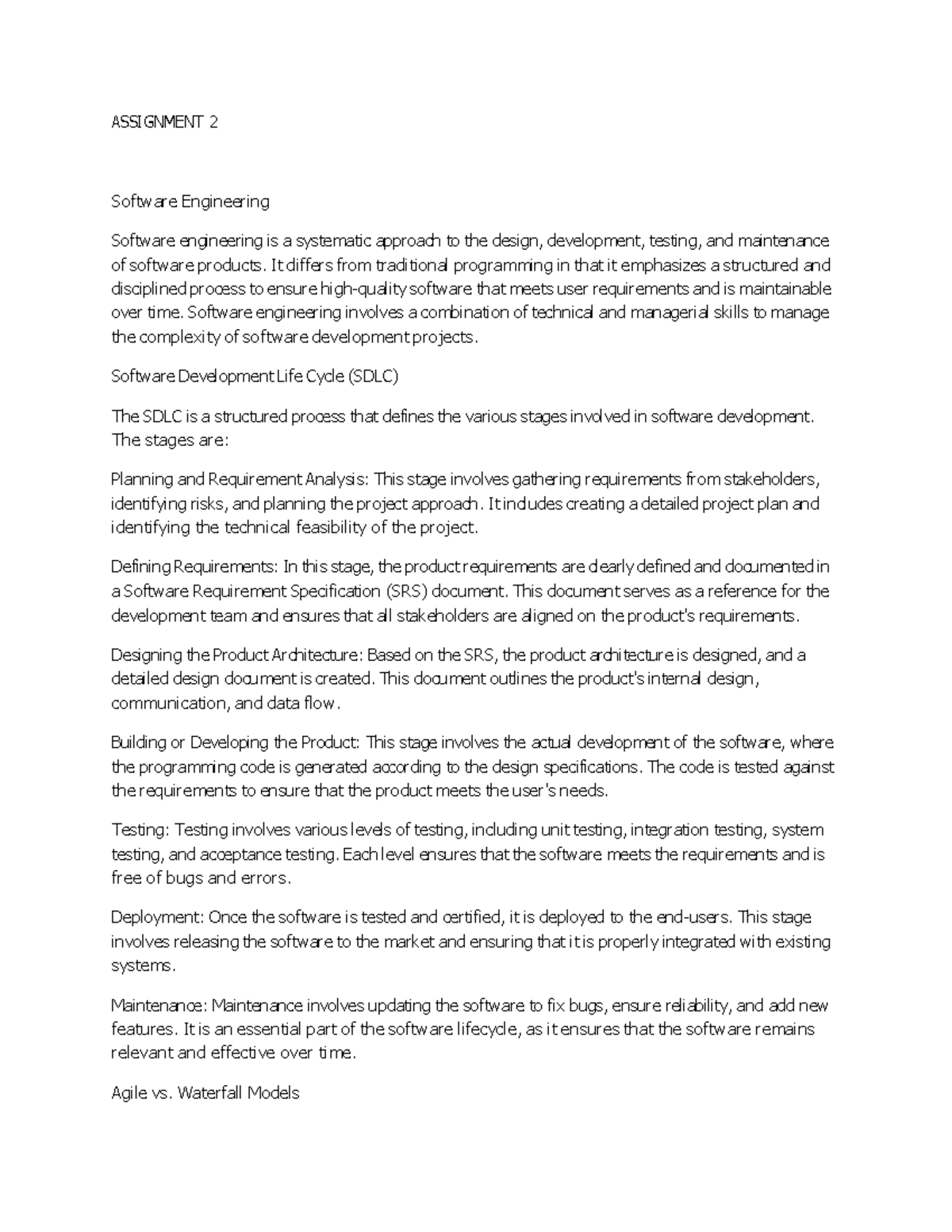 ASSIGNMENT 2: Software Engineering Overview and Key Concepts - Studocu