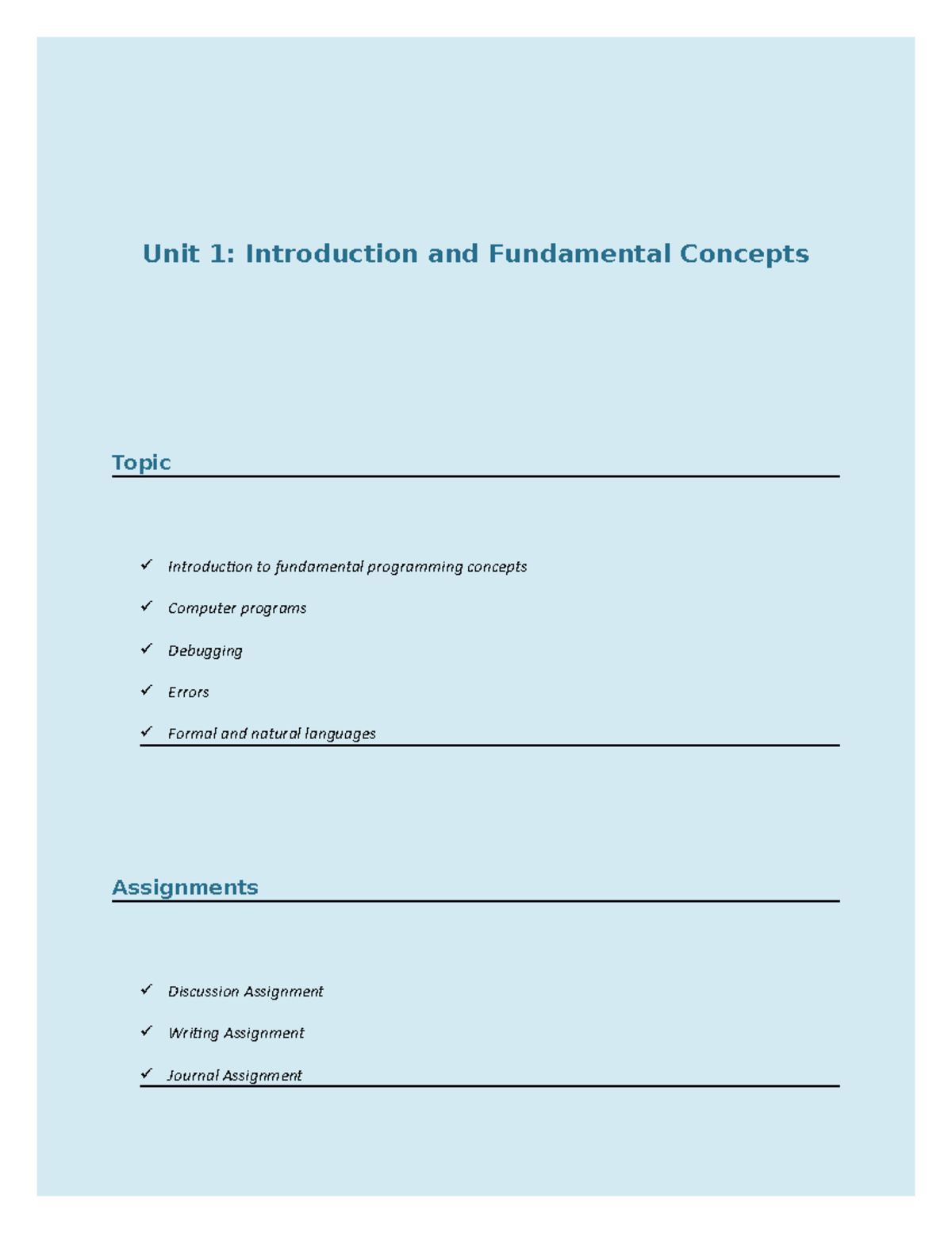 CS 1101 Unit 1: Intro to Programming Concepts and Assignments - Studocu