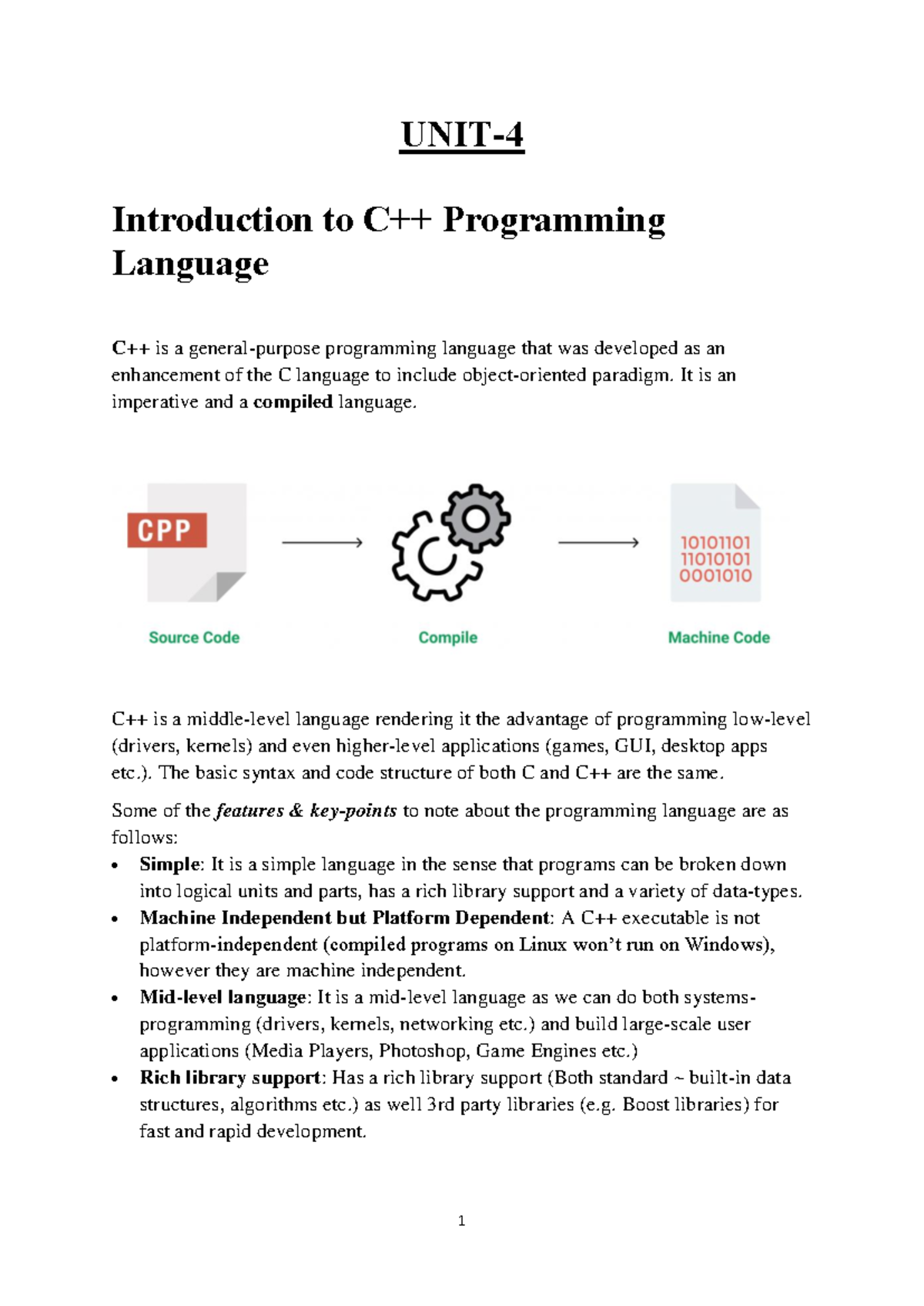 C++ Programming Overview - OOSD Unit 4 Study Notes - Studocu