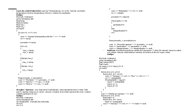 Códigos - Práctica 2: Ejercicios de Programación en C++ - Studocu
