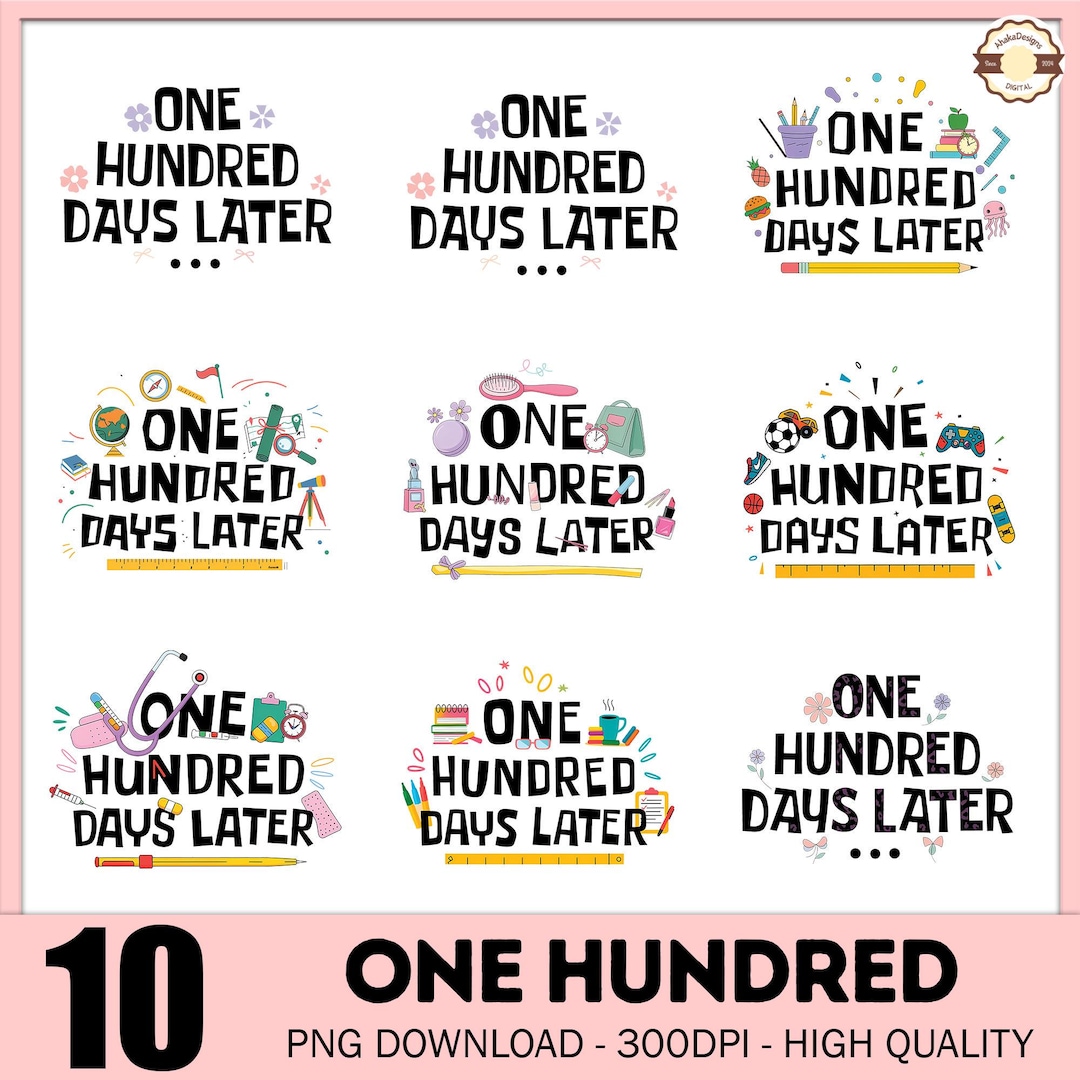 10 One Hundred Days Later Clipart Bundle, 100 Days Later Png, Happy 100 ...