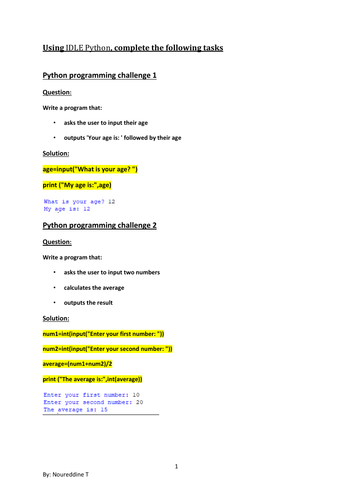 Python programming practical activities | Teaching Resources