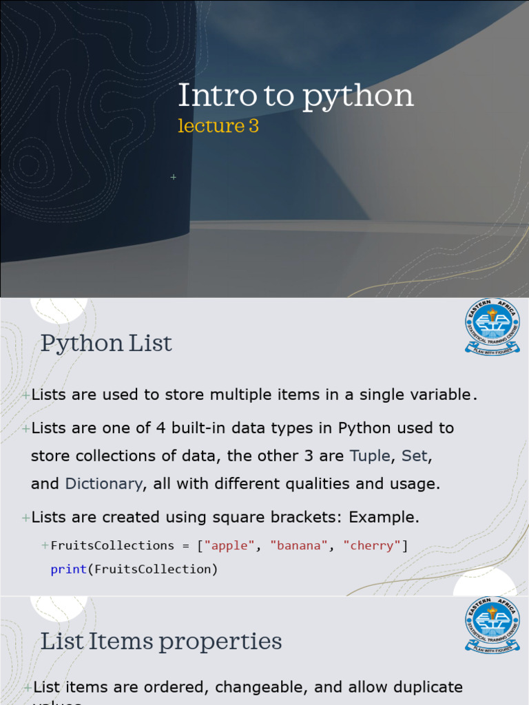 Based on this image's title: “Python Lecture 3 | PPT”
