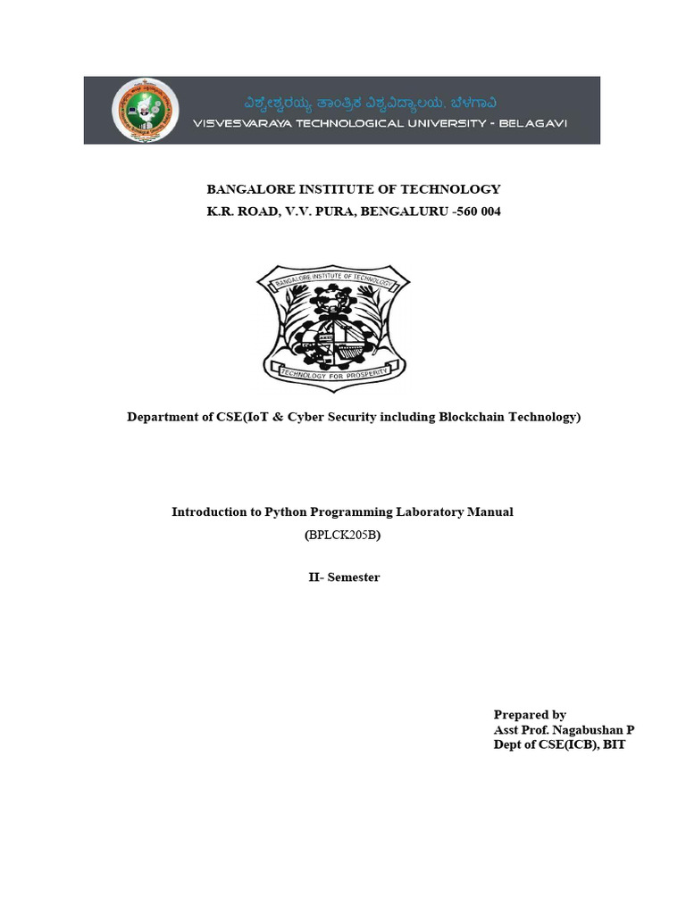 Python lab manual - Introduction to Python Programming Lab (BPLCK105B ...