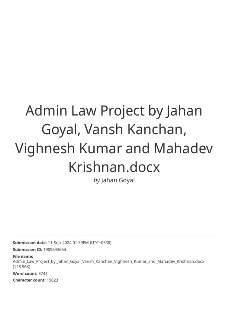 Admin Law - Jahan Goyal (022) - Vansh Kanchan (007) - Vighnesh Kumar ...