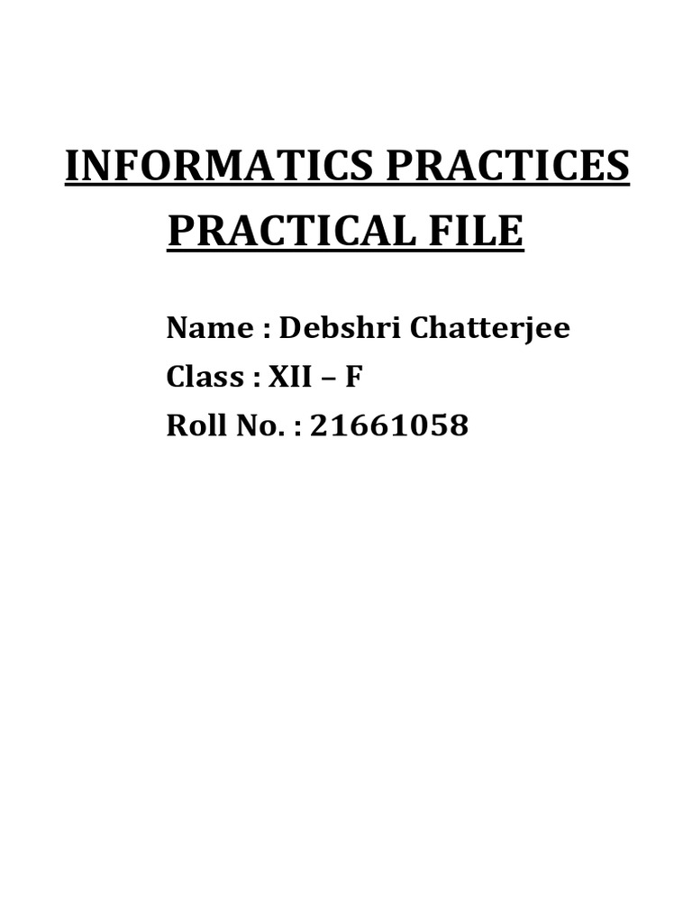 Class 12 Practical File Informatics Practices | PDF | Information ...