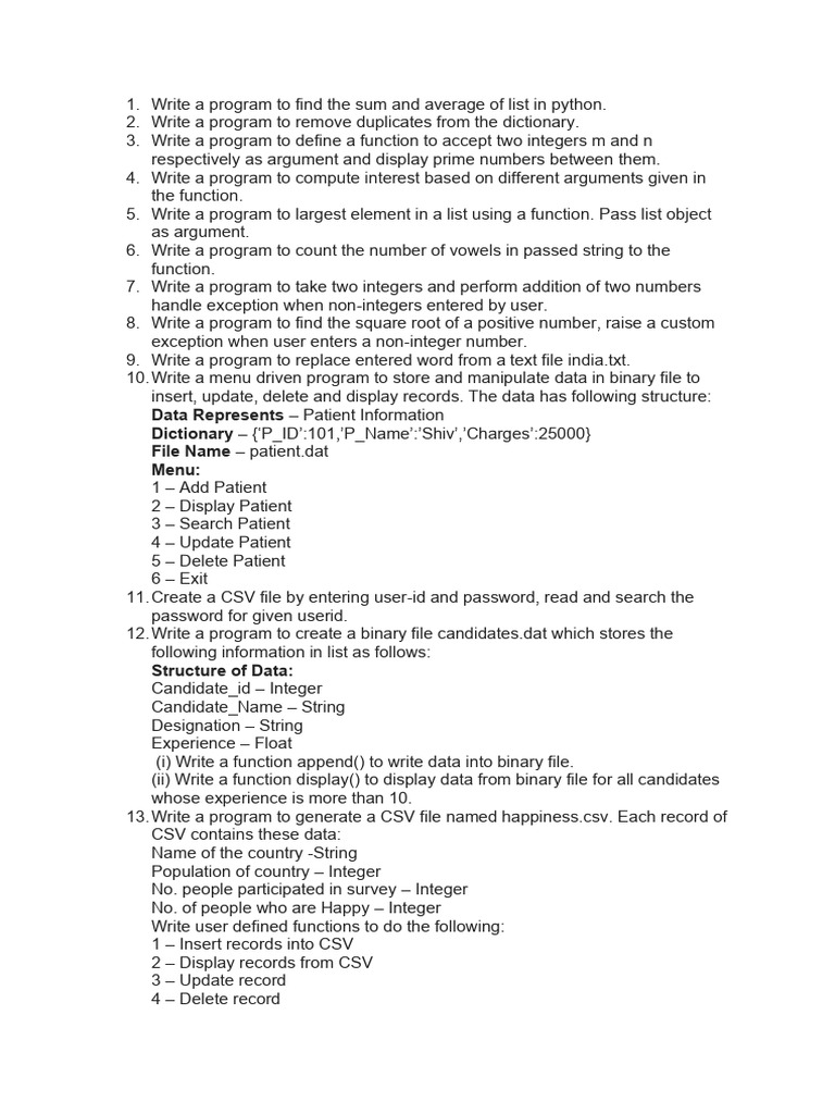 Ip Practical File Class Xii | PDF | Python (Programming Language ...