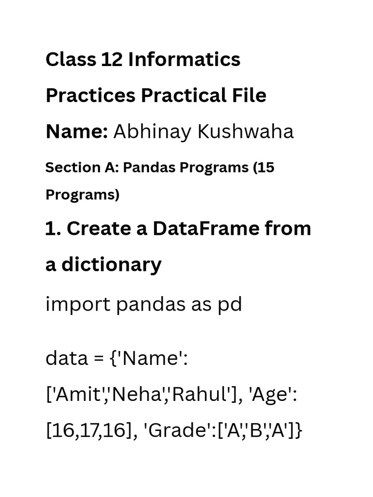 Download Practical File Informatics Practices Class 12 A Comprehensive ...