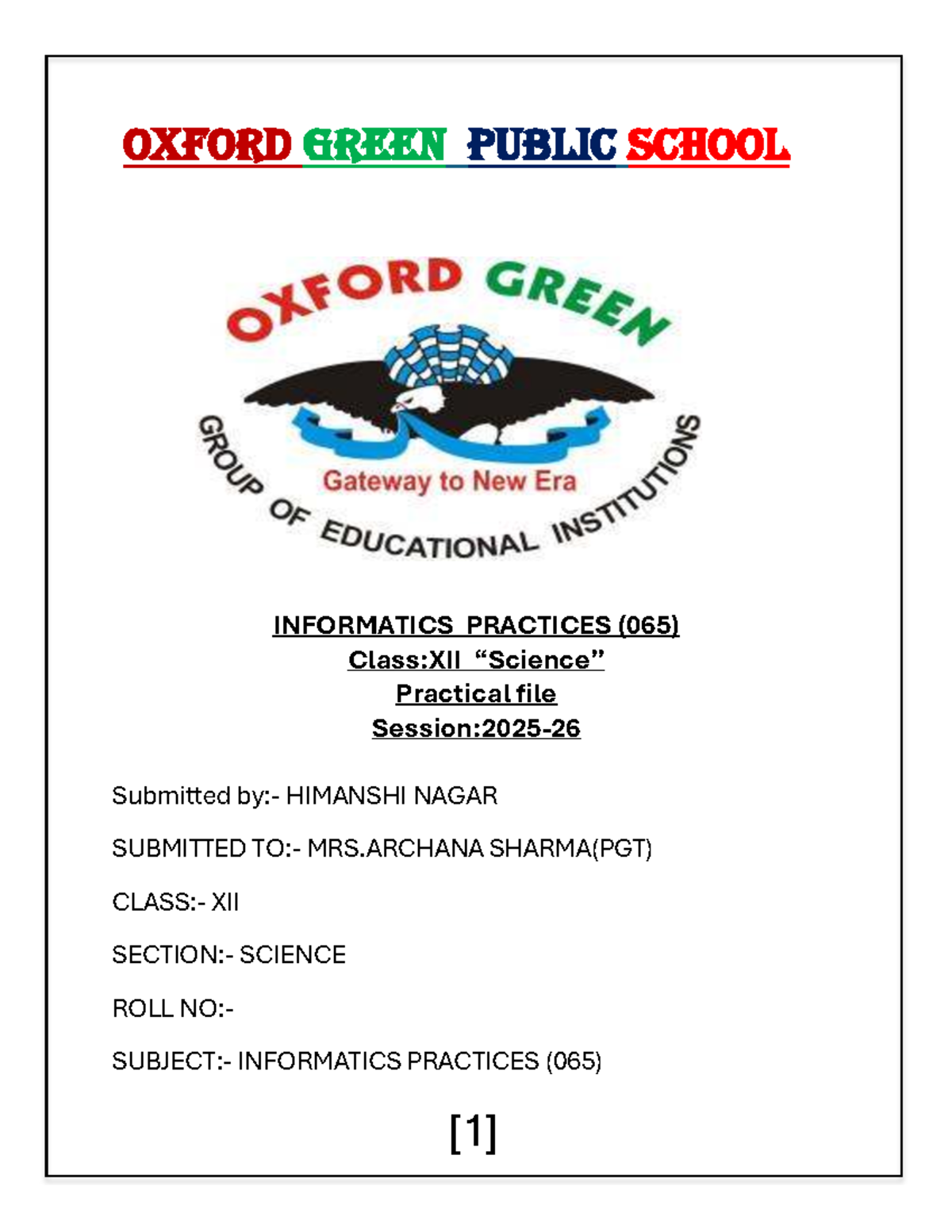 Class 11 12 Practical FILE Formate - INFORMATICS PRACTICES [065 ...