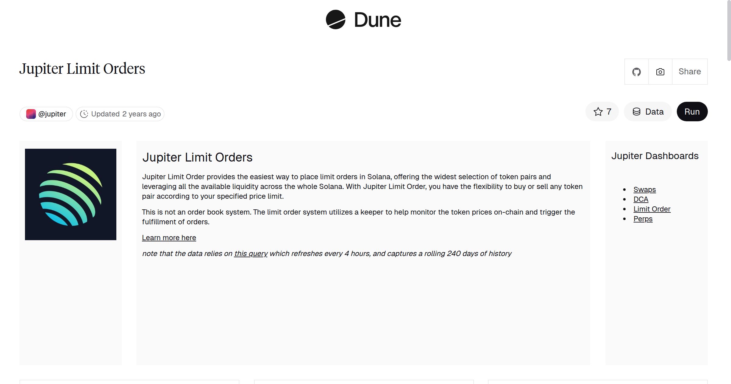 Jupiter Limit Orders | Dune