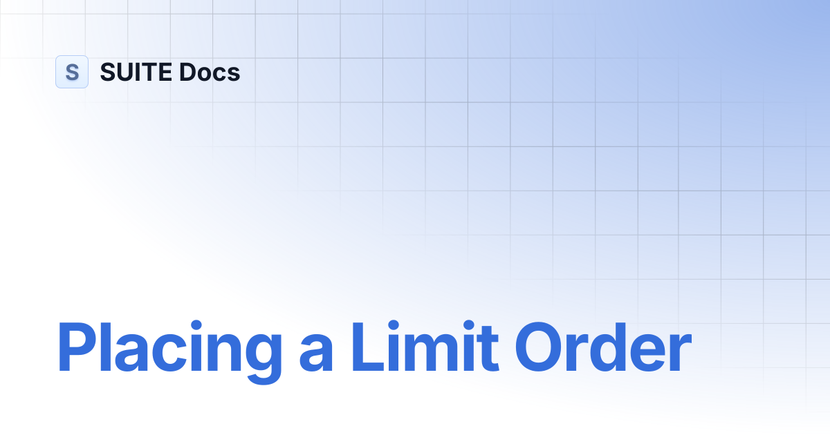 Placing a Limit Order | SUITE Docs