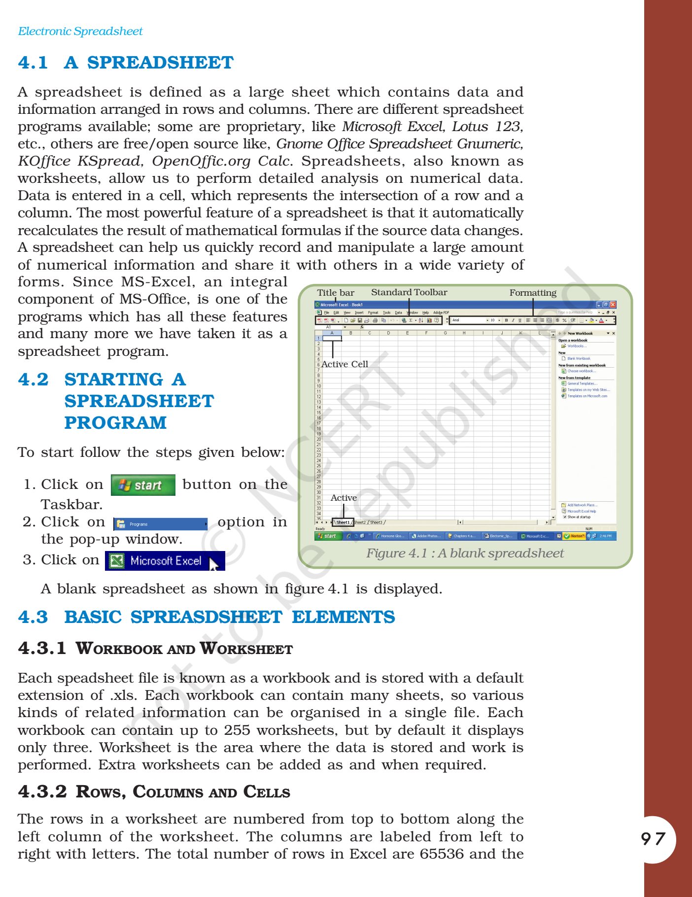 NCERT Book for Class 11 Computers Chapter 4 Electronic Spreadsheet