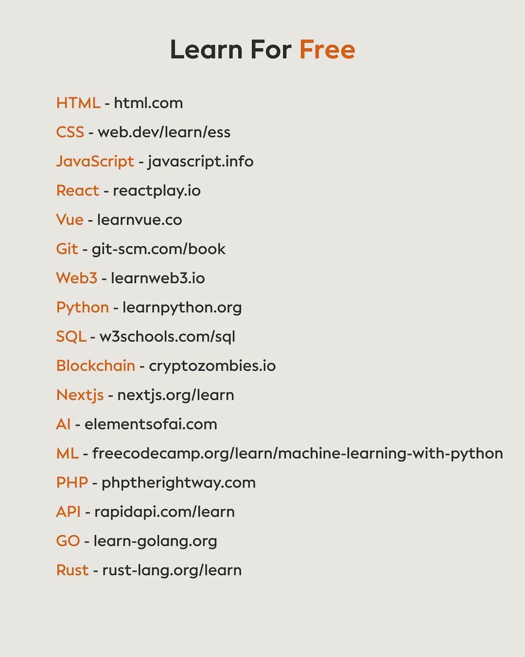Aakash Kanojiya on Twitter: "Free Platforms to Learn Coding 🔎 🌎 HTML ...
