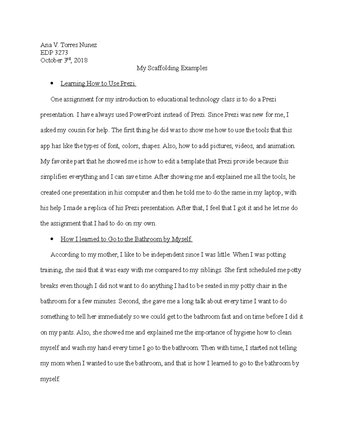 My Scaffolding Examples - Ana V. Torres Nunez EDP 3273 October 3rd ...