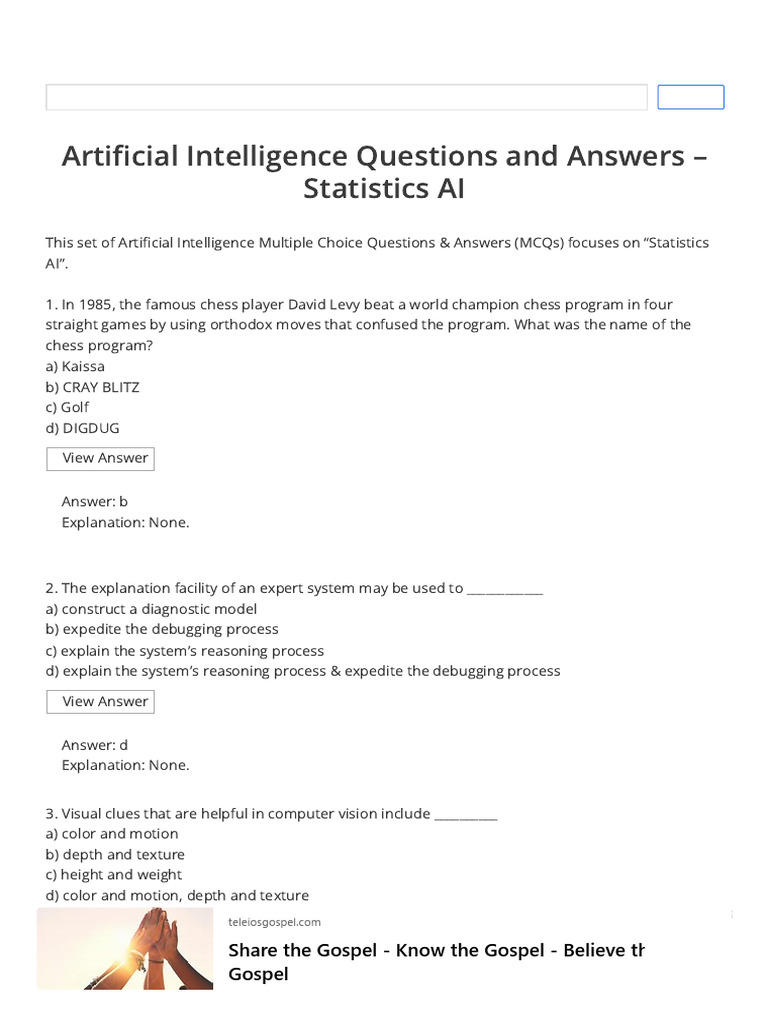 AI Statistics Questions and Answers - Sanfoundry | PDF | Artificial ...