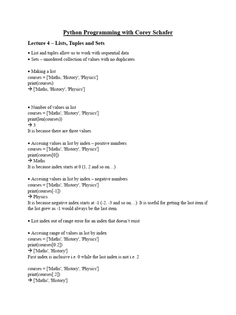 Python Programming With Corey Schafer - Notes - 4 | PDF | Mathematical ...