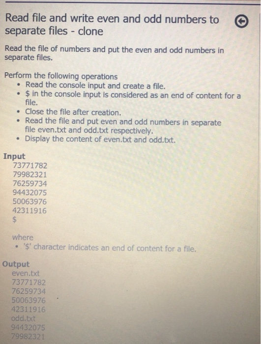 Solved Read file and write even and odd numbers to separate | Chegg.com
