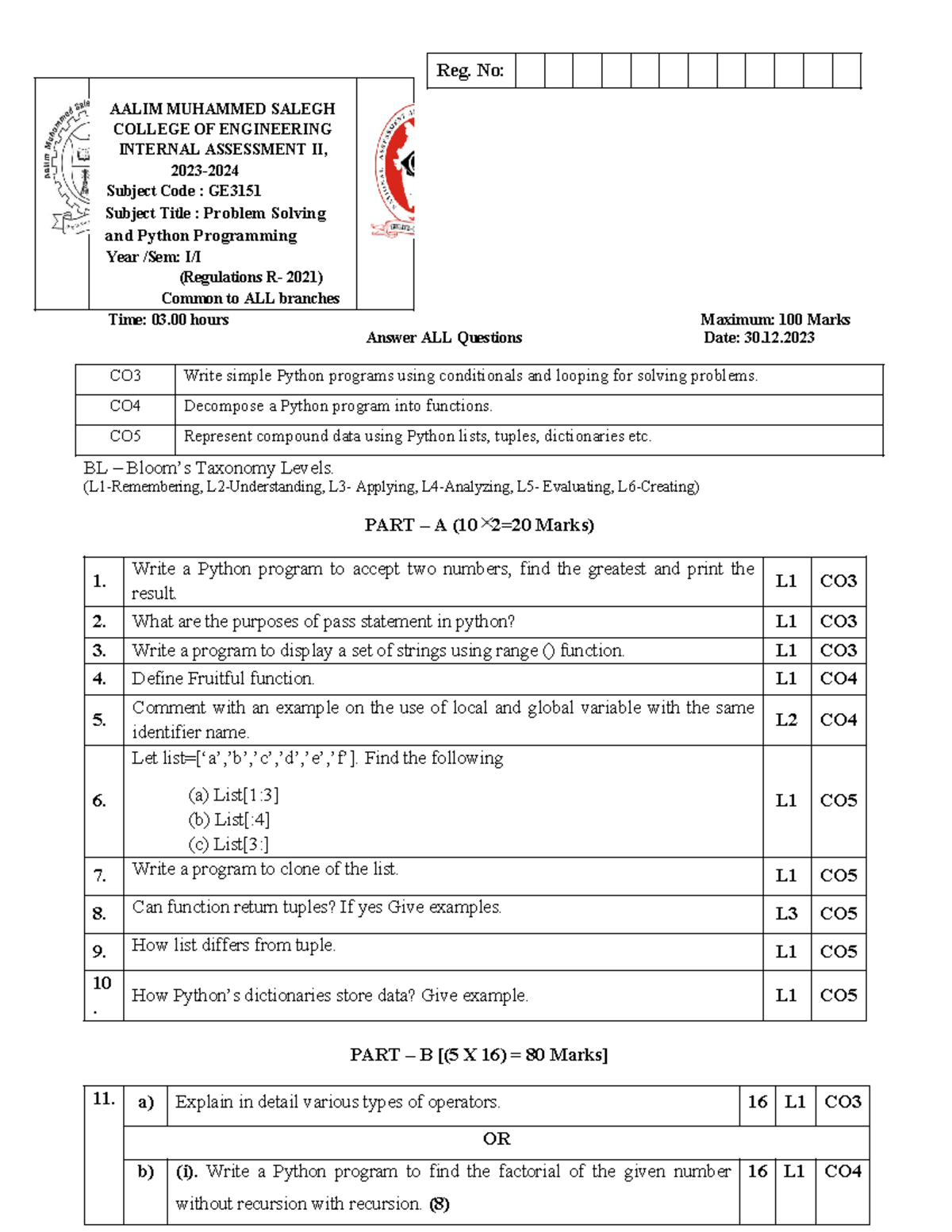 GE3151 PSPP IAT 2 Q - python question paper - AALIM MUHAMMED SALEGH ...