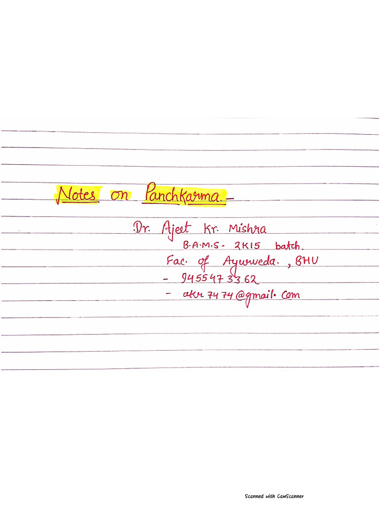 Panchakarma (Complete Notes) - DR - Ajeet Mishra (AyuTech) | PDF
