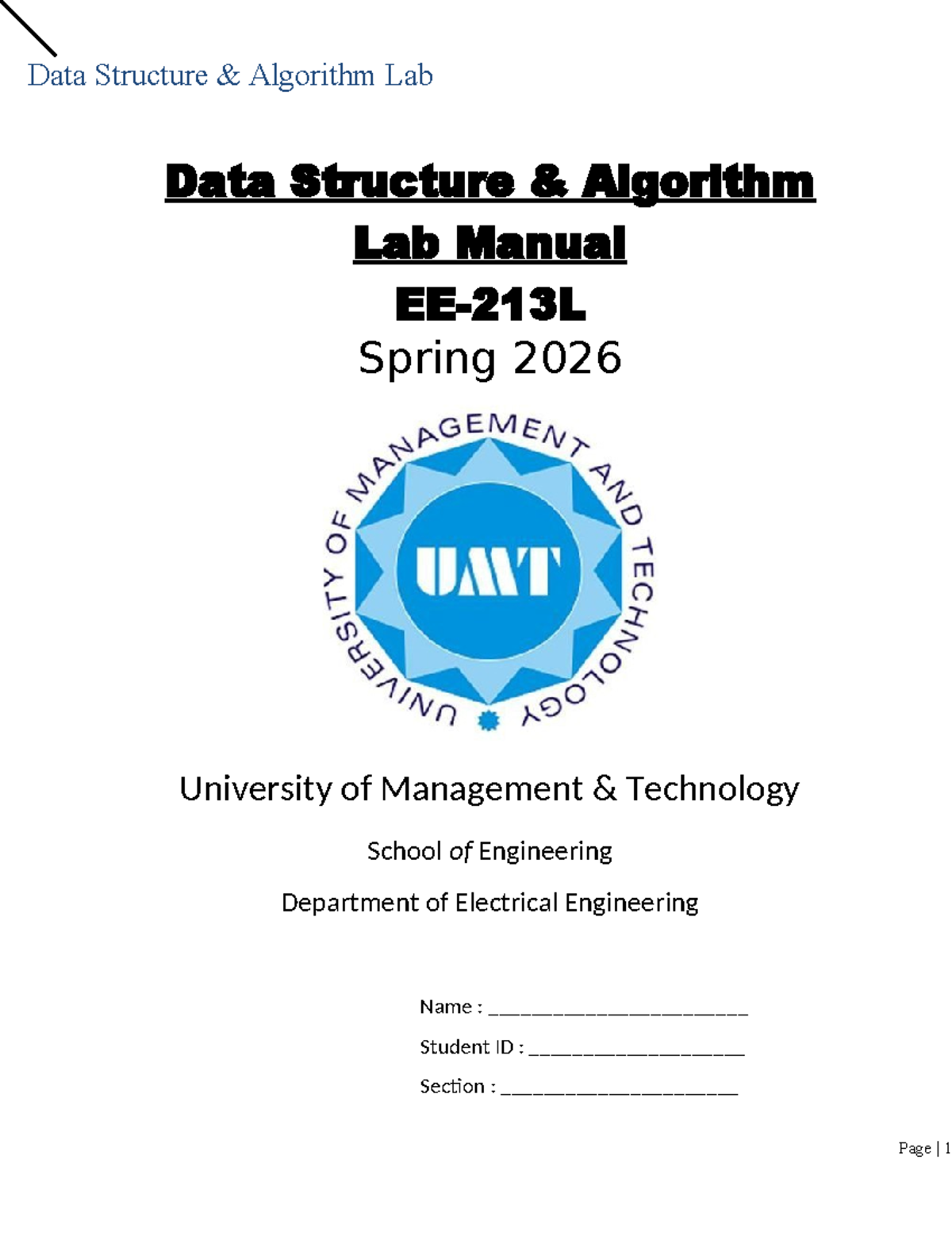 EE213L Data Structures & Algorithms Lab Manual - Spring 2026 - Studocu