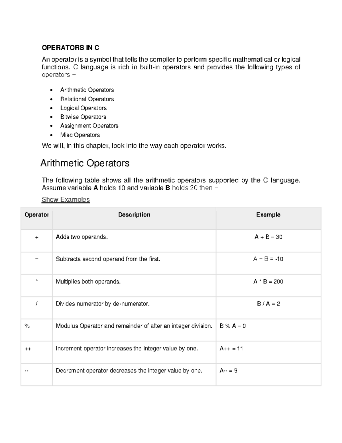 C Operators Overview - Essential Notes for Understanding - Studocu