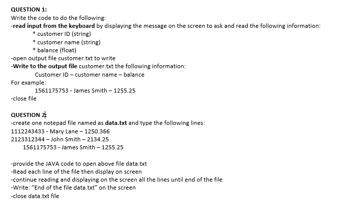DAA Lab 2b: Write a Java class called Customer to store their name and ...