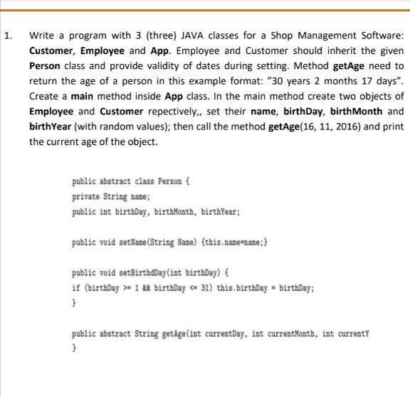 Solved 1. Write a program with 3 (three) JAVA classes for a | Chegg.com